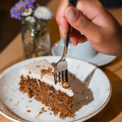 Wir rösten unseren speciality coffee traditionell, hell und mit Liebe zum Detail selbst. Dazu ein Stück selbst gemachten Kuchen.